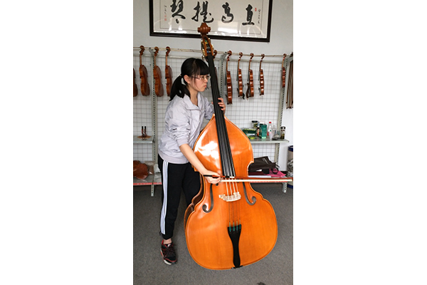 中央音乐学院音乐天才王明圆2015年在福建省国际低音提琴200多选手比赛中,金奖获得者,她使用的这把低音贝司是直高提琴为其专业定制的。